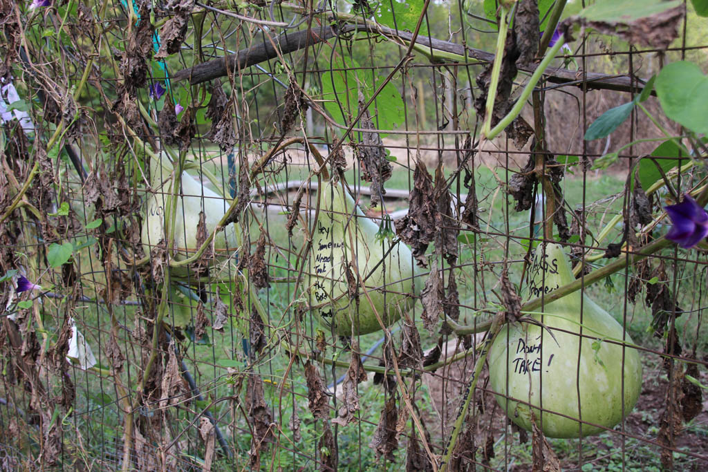 They were growing my favorite apple gourds with notes on them. One said to not take it! I walked more and was surprised to see a lot of banana trees growing, along with fig trees by this little house.