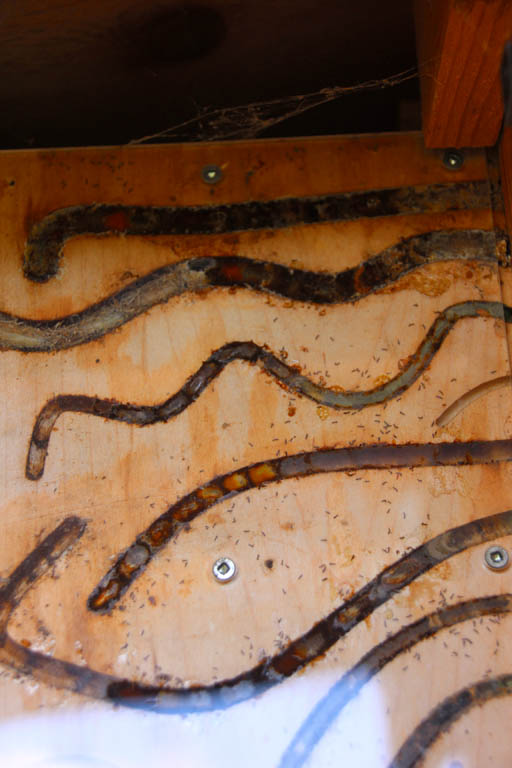 There was an interesting area where solitary bees were living out of a manmade structure. They even labeled the holes! The little door showed where some of the pupa were stored, waiting to emerge.