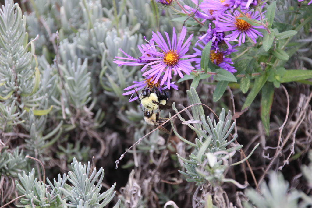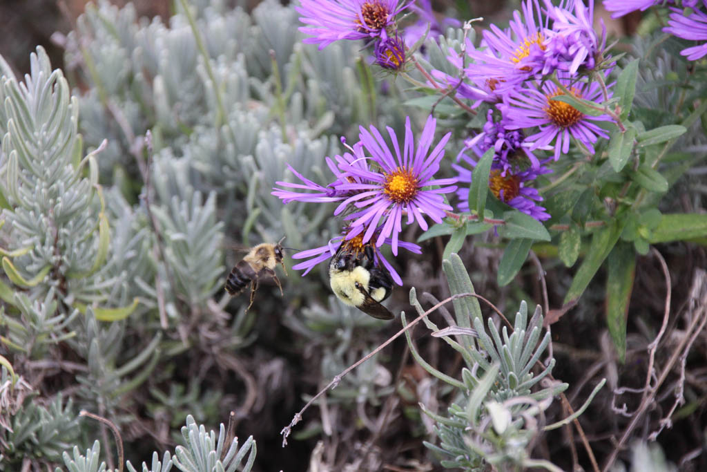 The first trip, I went into the small herb/flower garden to find the biggest bumblebee on some flowers. So big, she just walked to each one instead of flying. I watched her for so long that I caught a smaller bee fly over to her, mount her and god knows what, before flying back off. She didn’t even seem to notice!