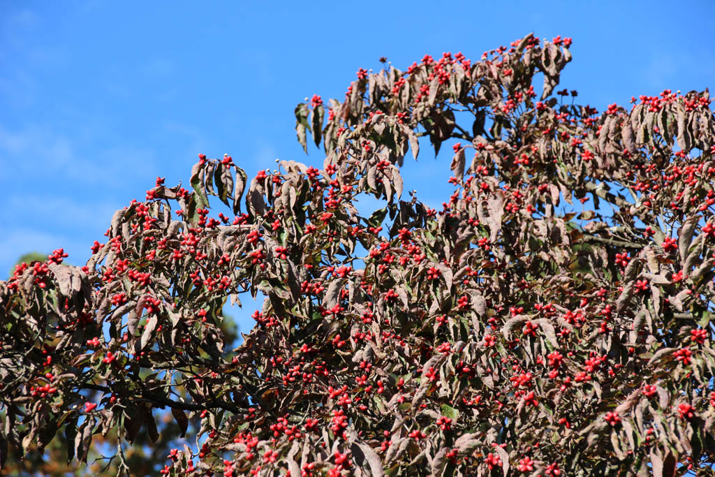 Two trees, bursting with fiery orange berries drew me over for a closer look.